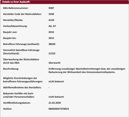- Was bedeutet der Audi Rückruf 23X6?