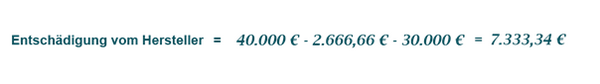 Die erwartete Gesamtleistung ist der erwartete Kilometerstand bei Ausmusterung des Wagens. Je nach Art des Dieselfahrzeugs wird diese vom Gericht zwischen 200.000 und 300.000 km bemessen.