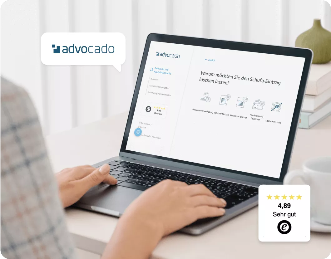 Die spezialisierten Rechtsanwälte unseres Kooperationspartners Advocado konnten bereits etliche negative SCHUFA-Einträge erfolgreich löschen lassen. Über den folgenden Link können Sie dort Ihren Fall schildern und sich eine kostenlose Ersteinschätzung sichern.