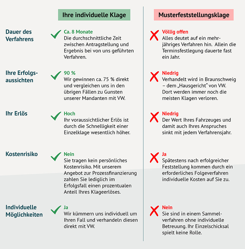 Warum ist ein individuelles Vorgehen per Klage besser als die Musterfeststellungsklage?