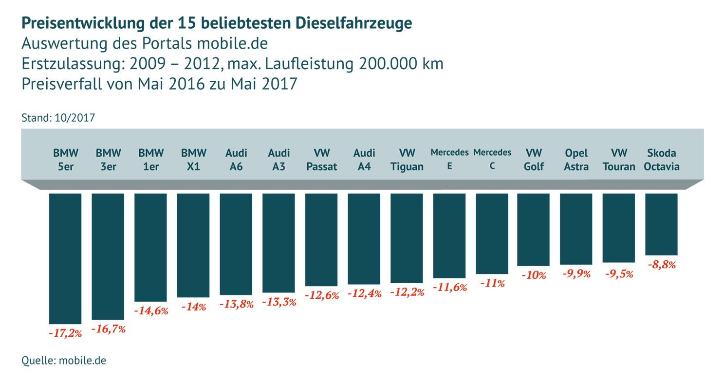 Der Wert Ihres Dieselfahrzeuges ist bereits heute gesunken und wird unserer Einschätzung nach weiter sinken. Die Gründe sind: